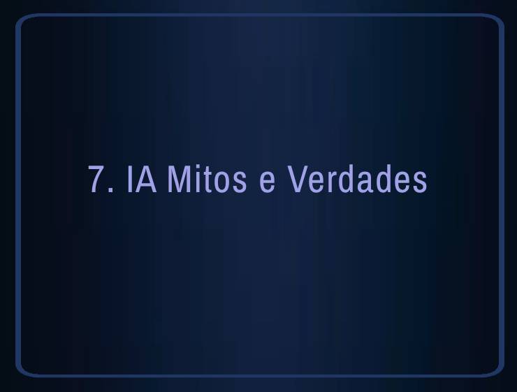 - “IA vai substituir todos os empregos.” – Verdade parcial; ela transformará profissões, mas também criará novas funções.